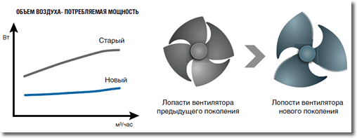 вентиляторов внутреннего и внешнего блоков. Точная регулировка скорости вращения позволяет экономить на 50 % больше мощности, чем при обычной инверторной технологии. Поскольку интенсивность