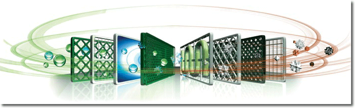 Генераторы анионов - Анионы помогают предотвращать размножение пылевых клещей, термитов и комаров, а также плесени, борются с запахами. Предварительный фильтр - Предварительный фильтр механически задерживает частицы пыли, шерсть животных и т.п. Антибактериальный фильтр - Новое антибактериальное покрытие обладает высокими стерилизующими свойствами и способствует уничтожению вредных микроорганизмов. НЕРА фильтр - Фильтр НЕРА может эффективно задерживать пыль, пыльцу, дым и частички шерсти домашних животных, освежать и делать чистым воздух в вашей комнате. Фотокаталитический фильтр - Высокоэффективный фотокаталитический фильтр на молекулярном уровне на 99,9% очищает воздух от неприятных запахов, микроорганизмов, летучих органических и неорганических соединений. Восстанавливает свои свойства под действием солнечных лучей. Срок службы фильтра до 3-х лет. Угольный фильтр - Фильтр содержит активированный уголь, который эффективно поглощает вредные газы, например, аммиак и сероводород, а также неприятные запахи. Фильтр отличается большой поглощающей способностью. Фильтр "Витамин С" - один из давно и наиболее широко известных витаминов. Он содержится в овощах, фруктах, ягодах и многих дикорастущих растениях. Витамин С нужен для оптимального течения многих жизненно важных процессов обмена веществ в организме, обеспечивает нормальное состояние соединительной ткани, обуславливающей эластичность и прочность кровеносных сосудов, улучшает состояние кожи, усиливает способность организма сопротивляться инфекциям, холоду и многим другим неблагоприятным факторам окружающей среды. Фильтр с ионами серебра - Ионы серебра в составе фильтра в состоянии стерилизовать большинство бактерий, препятствуют их размножению и устраняют причины возникновения неприятных запахов. Катехиновый фильтр - природный антисептик, извлекается из зеленого чая. Он обезвреживает бактерии и вирусы, а также расщепляет на безвредные соединения и дезодорирует молекулы, с которыми связаны запахи пота, сигаретного дыма. Механизм дезактивации вирусов - вирус использует окружающие его шипы для прикрепления к нормальным клеткам и их заражения. Катехин нарушает эту способность вируса, закрывая собой шипы. Многофункциональный фильтр - Фильтр "четыре в одном" скомбинирован из 4-х фильтров.